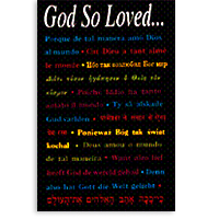 Beautiful tract reproduces John 3:16 in 12 different languages: English, Arabic, Chinese, Japanese, French, German, Greek, Hebrew, Hindi, Italian, Russian, and Spanish. Includes an English invitation to accept Jesus as Lord and Savior on the back. Perfect for lessons about world languages and cultures, Bible translation, and missionary travel / language learning. This tract is also great for outreach, international students, and missions banquet favors. Tie them to helium balloons and have your own international Gospel balloon launch!